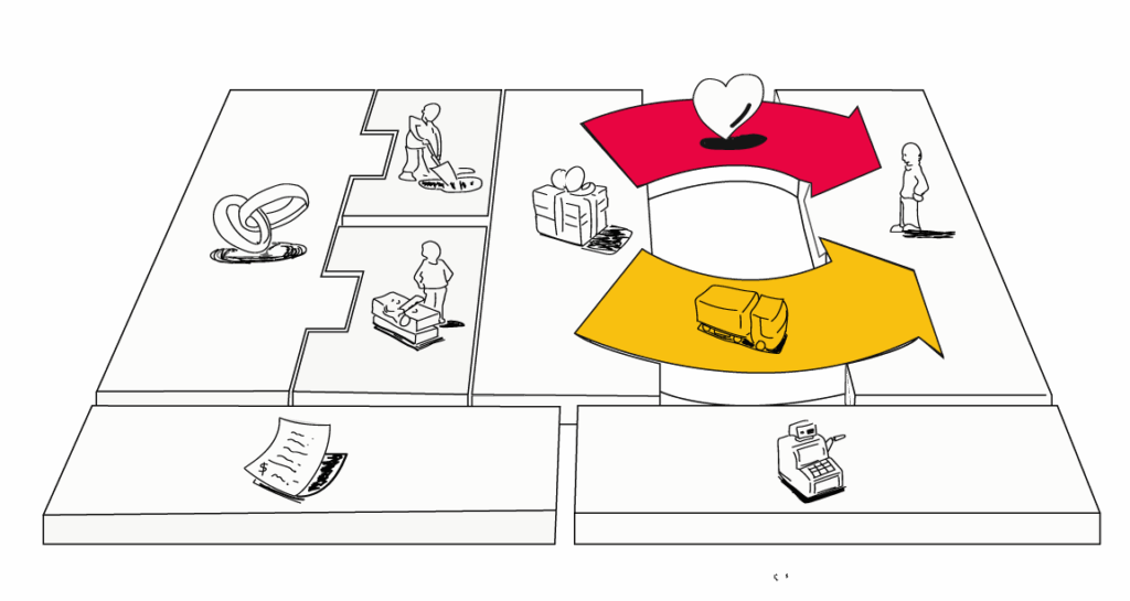 Rol en el BMC: Orquesta el flujo de información y producto hacia el cliente.